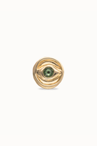 Gold eye-shaped signet ring with faceted green crystal. There are people who are visionary, whose intuition is their compass. Ser intuitiva takes into consideration that mystical side of us, allowing us to bring out our hidden self and show it to the world.