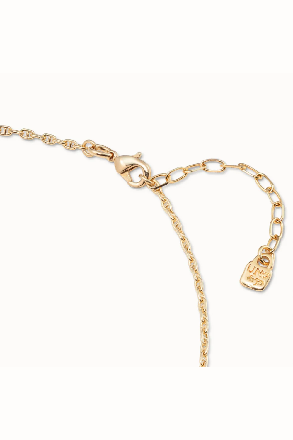 Short chain in gold plated composed of multiples oval links. A perfect accesorize that you can wear daily and in a special dates and which that will be difficult for you to go unnoticed. A timeless jewel that you can add some of the new pendants of ABECEDARIO Collection. A piece made in Spain by UNOde50 and 100% handmade.