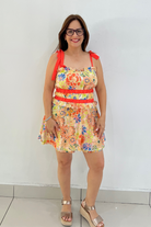Floral Skort Romper With Contrast Binding